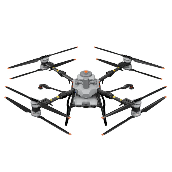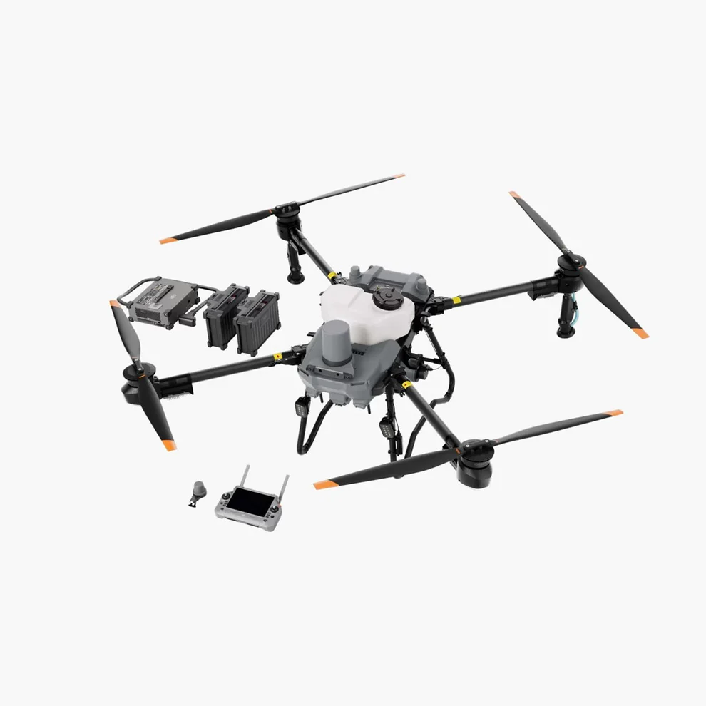 25 to 35 acres per flight hour 10.56 gallons spray tank 12-megapixel adjustable camera 30 ft Swath (Spray Width) Centrifugal Nozzles Coaxial Twin Rotor The DJI Agras T40 sprayer drone sprays up to 35 acres in one flight hour. This drone has four arms; however, on each arm, there are two motors and two pairs of propellers (54 inches props). Payload Capacity The DJI Agras T40 has a liquid payload of 10.56 gallons. The tank can hold pesticides, herbicides, fungicides, and other liquid chemicals. Most of the Agras sprayer drone users spray between 1 to 5 gallons per acre which is a much more concentrated than used in ground applications. If you spray 2 gallons per acre, the DJI Agras T40 tank can hold enough liquid to spray up to five acres in one flight. Dual Atomized Centrifugal Nozzles The all-new dual atomized centrifugal nozzles have two spinners that make the droplets more uniform in size, avoid splashing, and dripping, and prevent clogging when spraying powder-based chemicals. Local Map Creation For the first time, the Agras T40 has a 12-megapixel camera with an adjustable gimbal to take high-quality pictures of the field while flying, and Agras T40's remote controller can process the images in real-time. Battery The Agras T40 battery can be charged in about 10 minutes when the charger is connected to a 240-volt outlet. The Agras T40 battery has a warranty of 1 year / 1,500 Charging cycles Magnetic Drive Impeller Pump Updated Magnetic drive Transmission Impeller Pumps of the Agras T40 have a flow rate of 12L/min. The new DJI pump design separates the pump motor and the fluid to provide a zero-corrosion pump. 110 lbs Spreader Attachment The Agras T40 Spreader can carry 110 lbs of dry material and has a 18.5 gallon tank. The T40 spreader's new lid is much larger, which increases the spreading efficiency by reducing the refilling time. Improved Obstacle Avoidance System The new active phased array radar of the Agras T40 has a 164 ft detection range. In addition to the mentioned radar, the Agras T40 is equipped with a binocular vision system that allows 3D terrain mapping and optimal bypassing of obstacles.